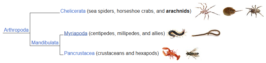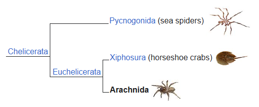 Arachnida is one of the major arthropod groups that includes spiders, scorpions, ticks, mites etc. They are primarily characterlized by having segmented bodies that consists of a head, thorax and abdomen. They also possess jointed appendages, an exoskeleton, and an open circulatory system in which the blood is free-flowing within the body and not containined in vessels.